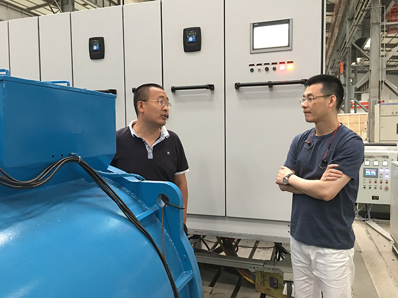 6月12日,由山西汾西重工有限責(zé)任公司、北京賽思億電氣科技有限公司設(shè)計(jì)制造的中國(guó)首套直流組網(wǎng)電力推進(jìn)系統(tǒng)順利完成陸上系統(tǒng)聯(lián)調(diào),船東泰和海洋科技集團(tuán)王衛(wèi)星總裁、中船重工第七〇二研究所上海分部葛緯楨總師及相關(guān)專家到廠驗(yàn)收,系統(tǒng)聯(lián)調(diào)平臺(tái)及調(diào)試成果得到了船東及設(shè)計(jì)院各位專家的肯定。