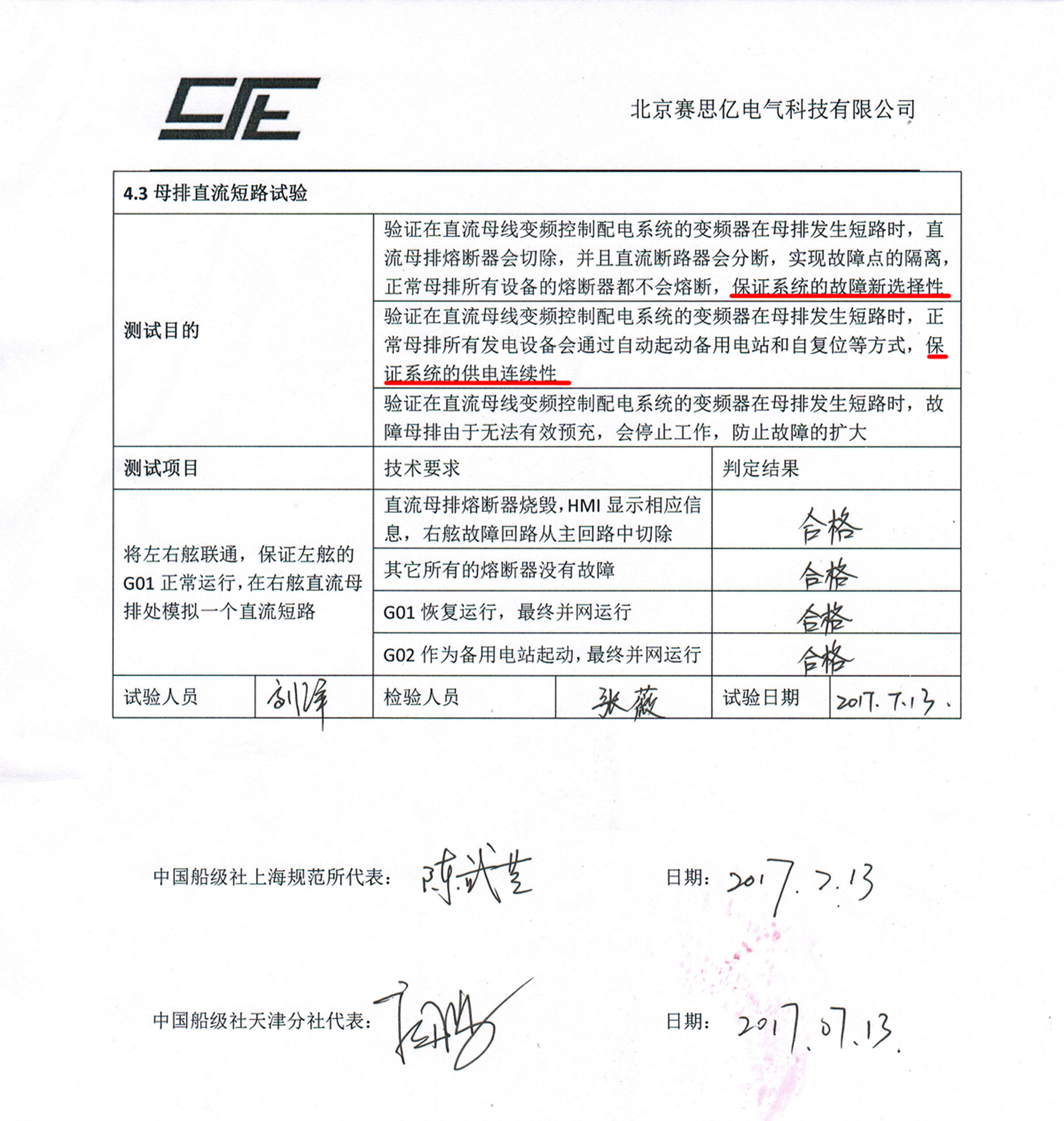 以上試驗結果已經(jīng)獲得了中國船級社規(guī)范所、產(chǎn)品處的專家的驗收會簽。