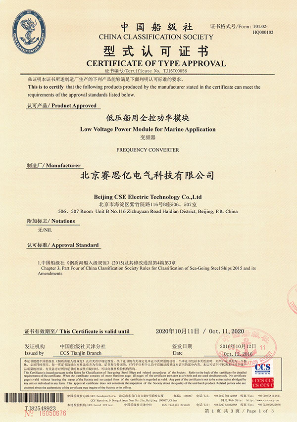 本項(xiàng)目的AFE型電力推進(jìn)系統(tǒng)采用了賽思億公司自主研發(fā)的船舶電力推進(jìn)用變頻器,并采用自主研發(fā)并具有CCS型式認(rèn)可的核心變頻模塊,打破了船舶變頻器尤其是船舶變頻模塊長時(shí)間由國外廠家壟斷的局面。
