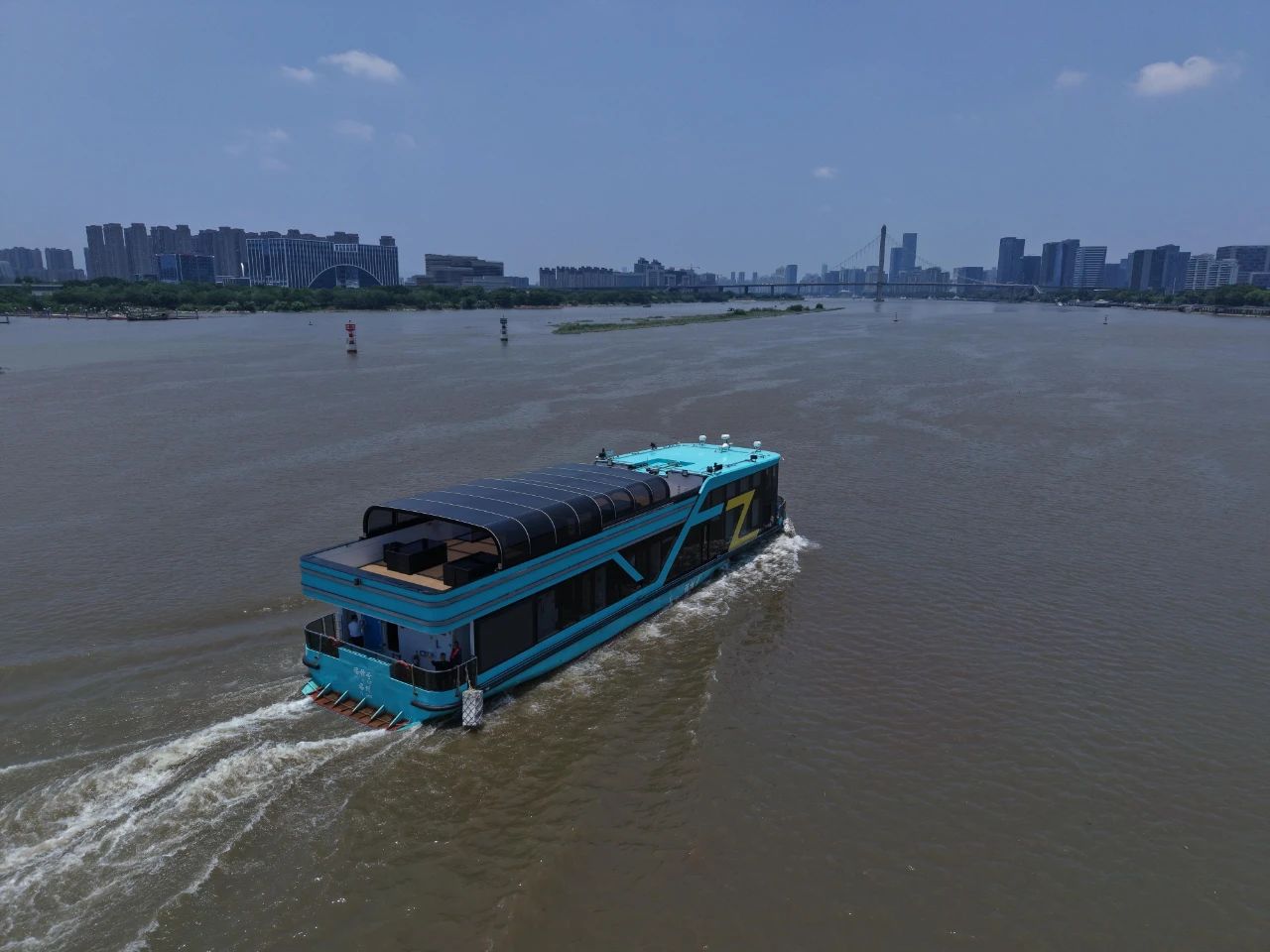 由福州市兩江四岸客運(yùn)有限公司出資、湖南海荃游艇有限公司建造的20.8m游船,整個(gè)系統(tǒng)配置共接入2組鋰電池組,每組容量179.6kWh,整船鋰電池容量共計(jì)359.2kWh。經(jīng)過集中式的直流變頻電控設(shè)備進(jìn)行并網(wǎng),驅(qū)動(dòng)2臺(tái)50kW的主推電機(jī),電控系統(tǒng)搭載中船賽思億自主知識(shí)產(chǎn)權(quán)產(chǎn)品。建成后將投入到兩江四岸旅游觀光服務(wù),目前,賽思億已為船東福州市兩江四岸客運(yùn)有限公司的4艘純電動(dòng)船舶提供動(dòng)力系統(tǒng)服務(wù)。